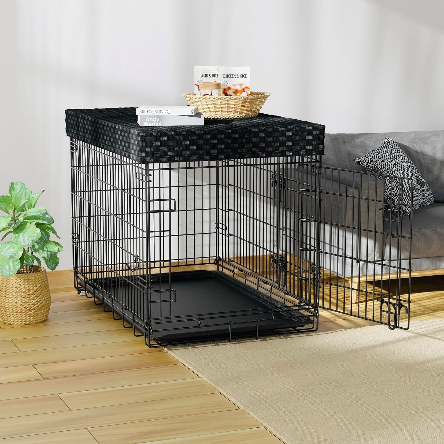 This crate includes a leak-proof plastic pan that can be removed for easy cleaning. The slide-bolt door latches keep your pet safely inside, while the rounded corners prevent any snags or injuries. The adjustable divider panel allows you to customize the size of the living space as your pet grows, making it great for puppies who are still growing and need a smaller area for training.