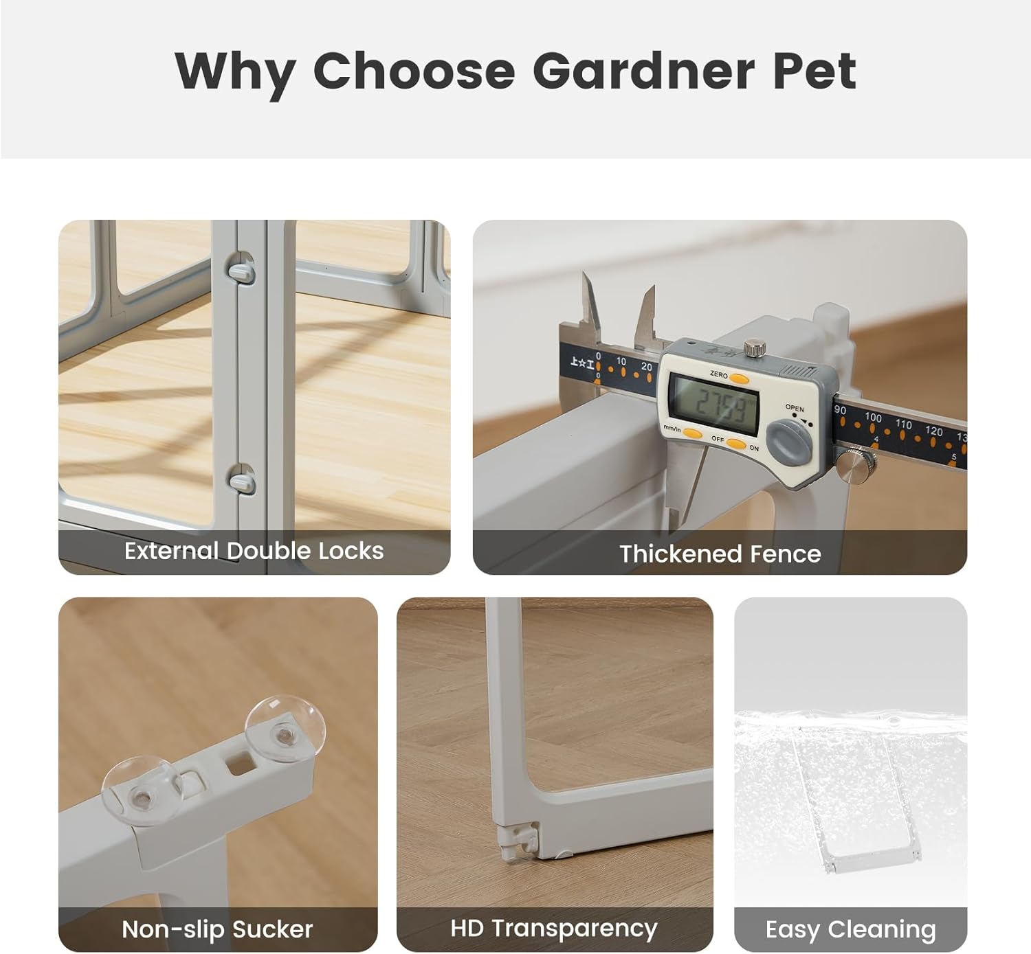The Transparent Playpens Pet Enclosure has received excellent reviews on Amazon, with customers praising its sturdy construction and durability. Many users appreciate the transparent panels that allow pets to see their surroundings while still being contained. The playpen is also highlighted for its easy assembly, with customers mentioning how quickly and hassle-free it is to set up.