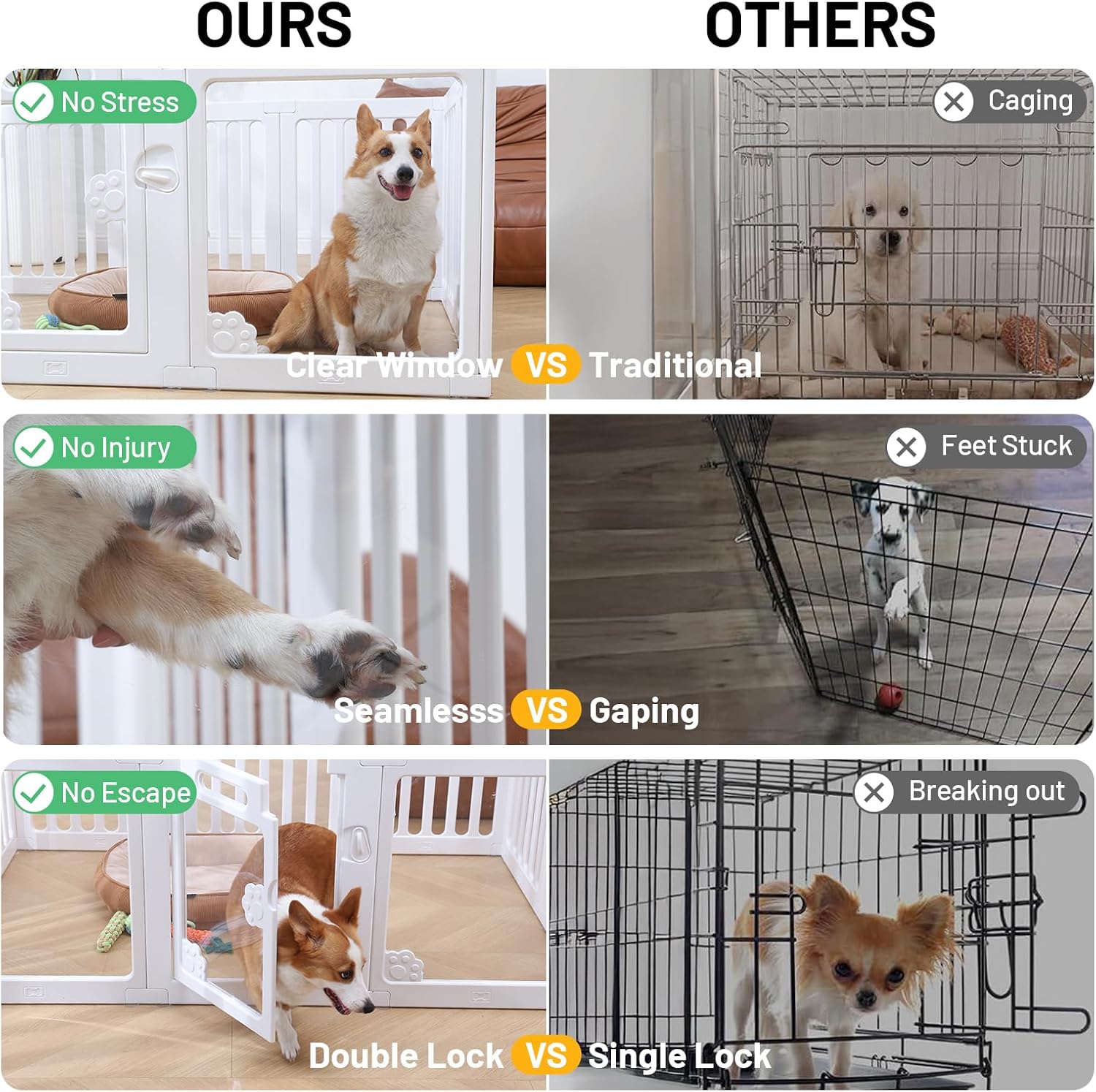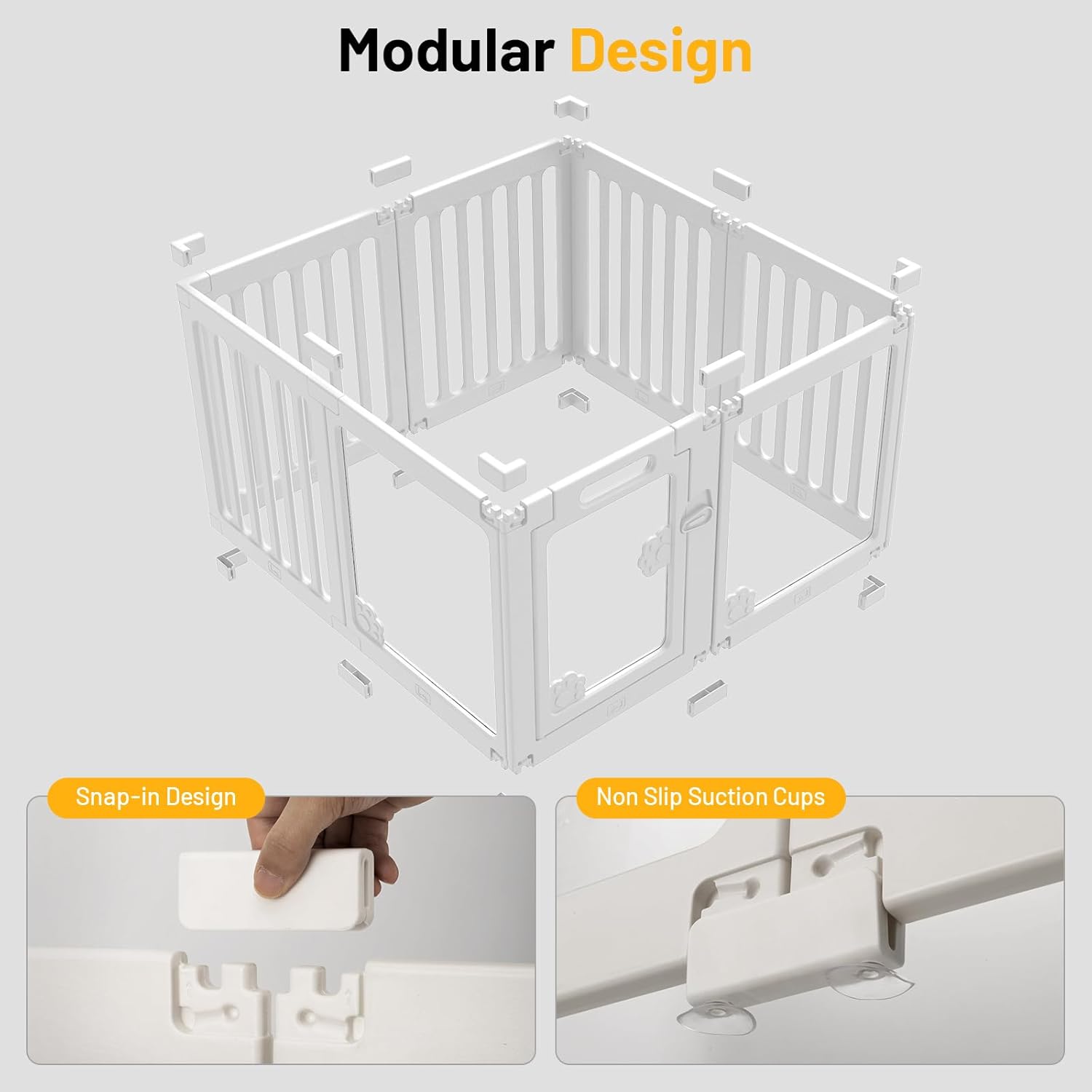 Dog Fence Pet Playpen Clear Acrylic Puppy Cat Small Play Pen Indoor Foldable Kennel Whelping Box for Dogs with Gate (5 Plastic Panels+3 Transparent Panels)