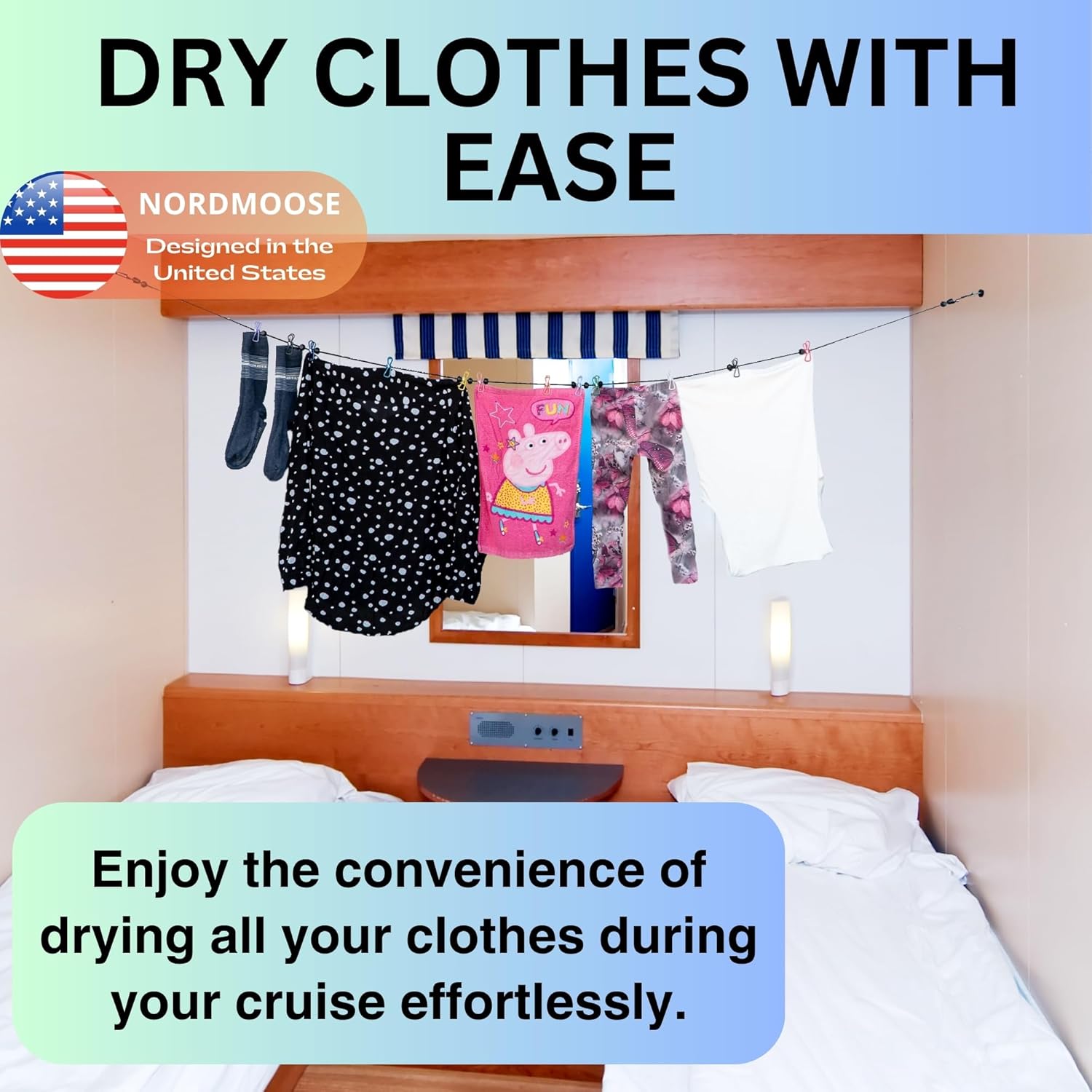 Magnetic Clothesline for Cruise Ship Cabin Approved - Strong Rubber Coated Non-Scratch Magnets, Travel Clothesline for Cruise Ship Essentials 2025 Updated Stronger Magnets