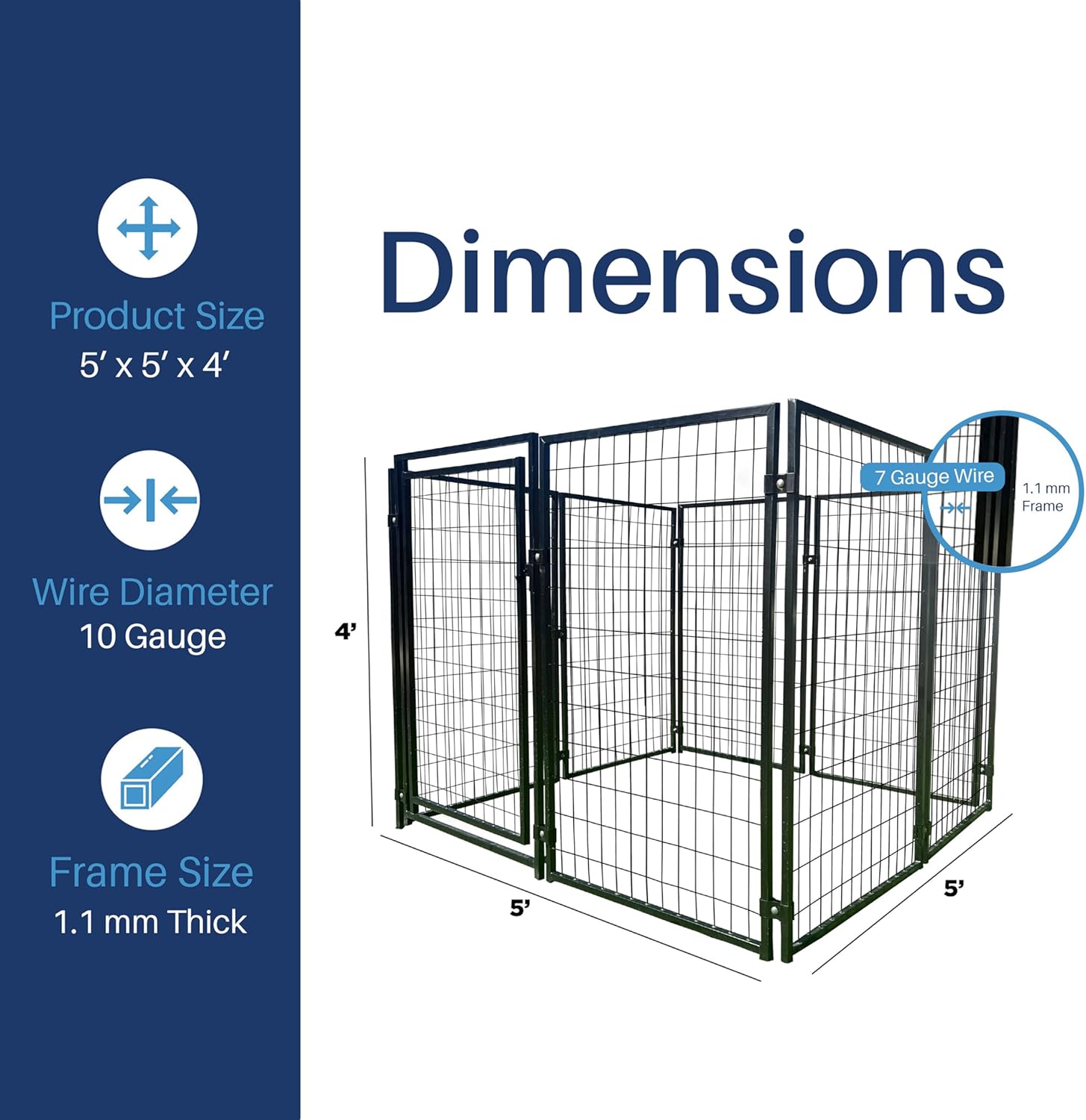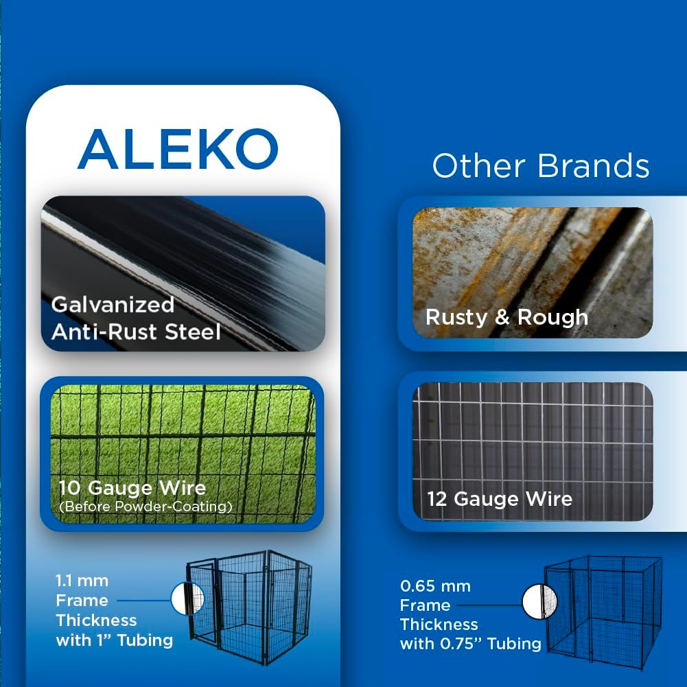 ALEKO Steel Dog Kennel Playpen | Indoor Outdoor Pen for Small/Medium/Large Puppy/Dog | 5'x5'x4' Large Galvanized Steel Kennel| Anti-Rust | Portable Travel Pet Kennel |(Black DK5X5X4SQ)