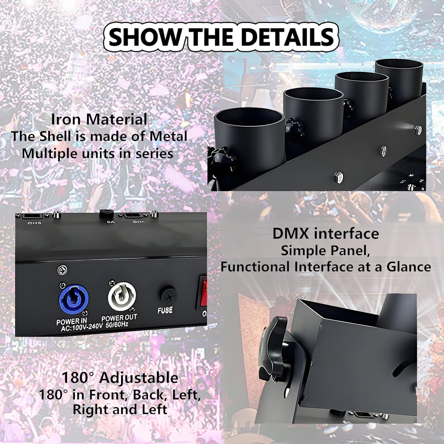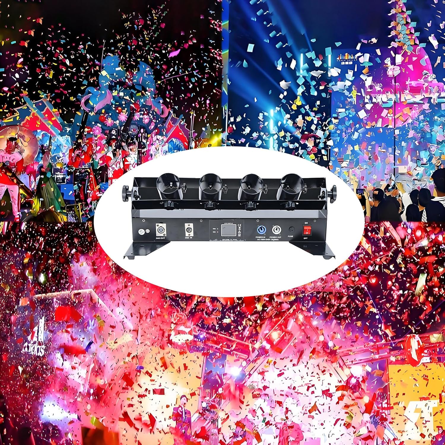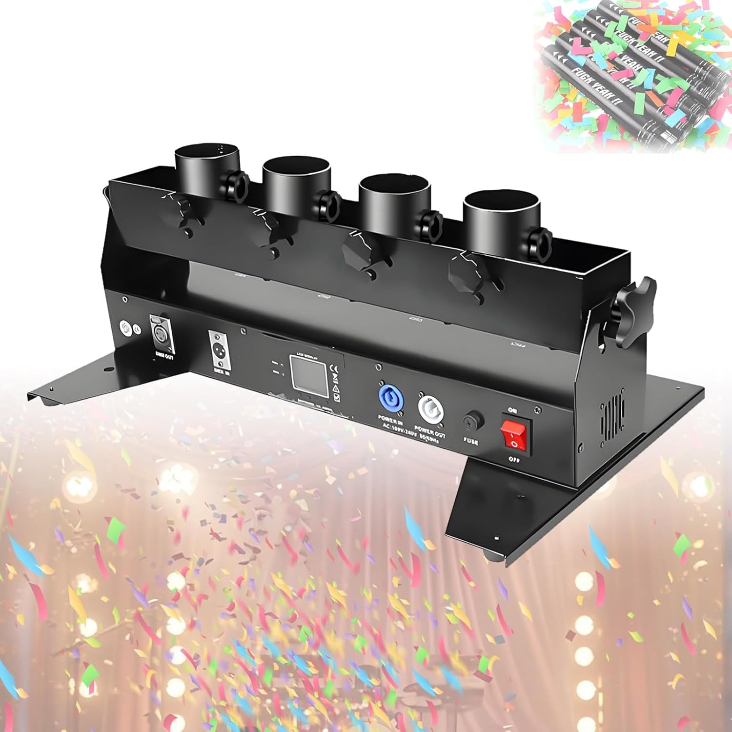 Electric Confetti Cannon Machine, Professional Confetti Launcher, with 25 Confetti Cannon 80cm, Remote & DMX Control, Confetti Blower for Weddding Disco Show Club Stage Party 4shot-25pcs
