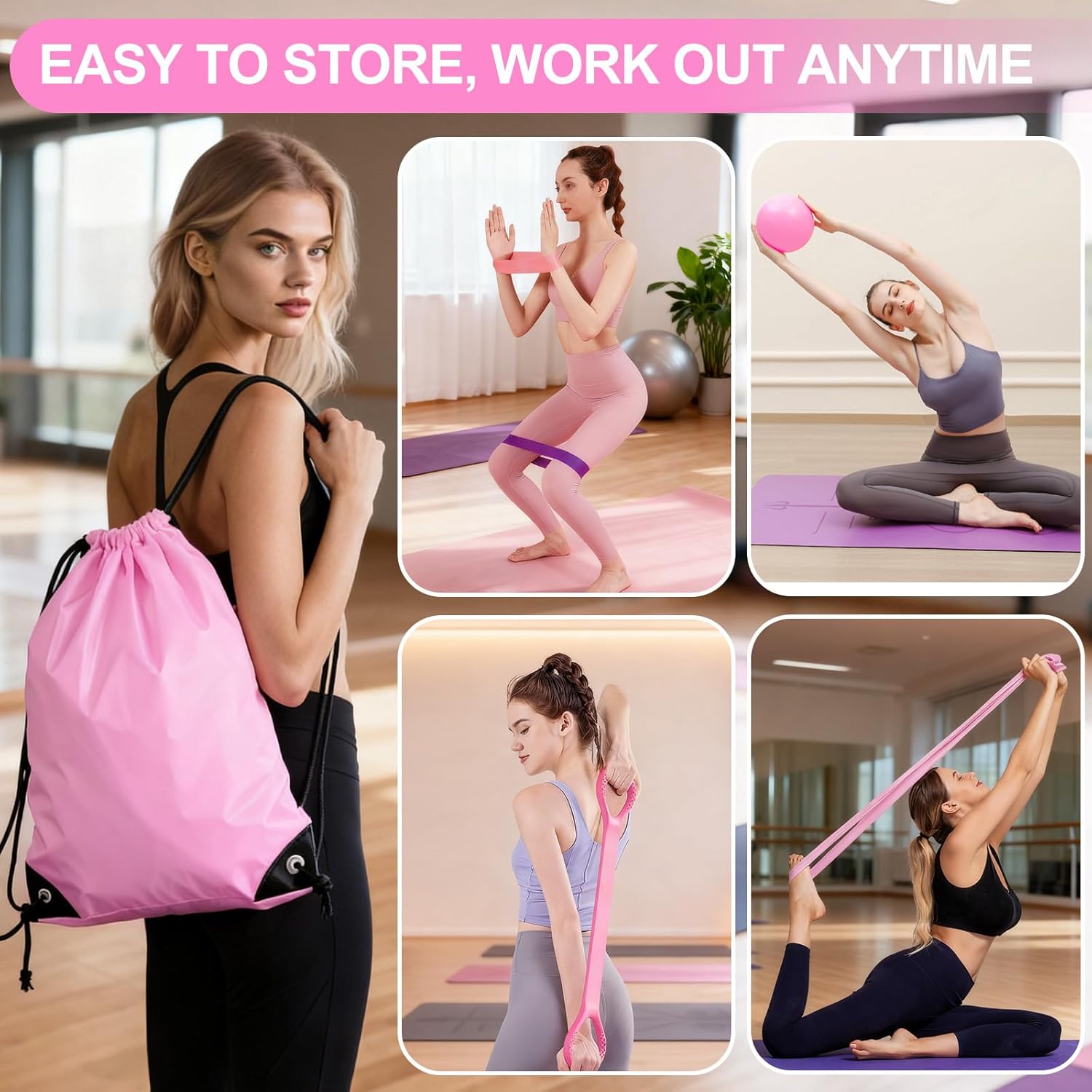 Pilates Kit for Women, Pilates Equipment with 13'' Magic Circle, Pilates Ring and Ball Set with 5 Strength Bands, Hip Thrust Belt, Compact Workout Set at Home