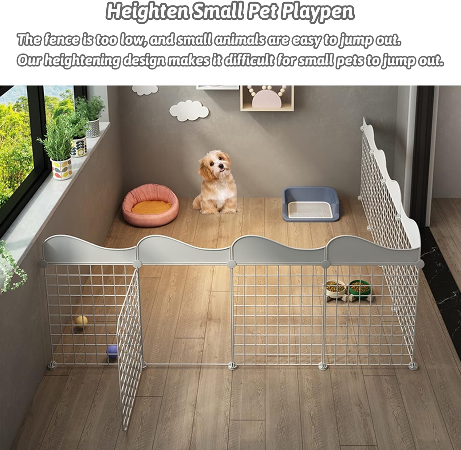 Fhiny Small Animal Playpen, Portable Rabbit Fence Indoor Metal Wire Yard Fence Guinea Pig Cage Playpen Metal Enclosure for Rabbit Guinea Pig Chinchilla Hamster Puppy Kitten with 12 Panels (White)