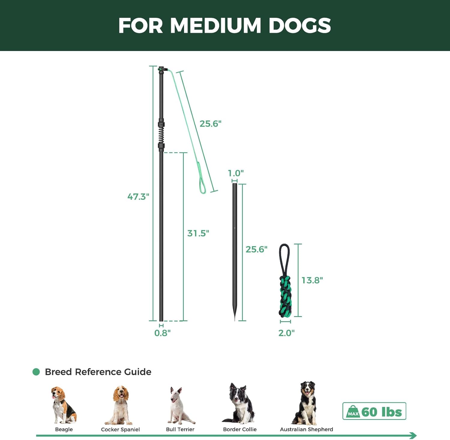 FXW TugPal Flex Outdoor Tug of War Toy for Dog,Interactive Exercise Game with Spring-Top Rod for Yard,47 inch for Medium Dogs up to 60 lbs| Safe Design & Rustproof Base,│Patent Pending