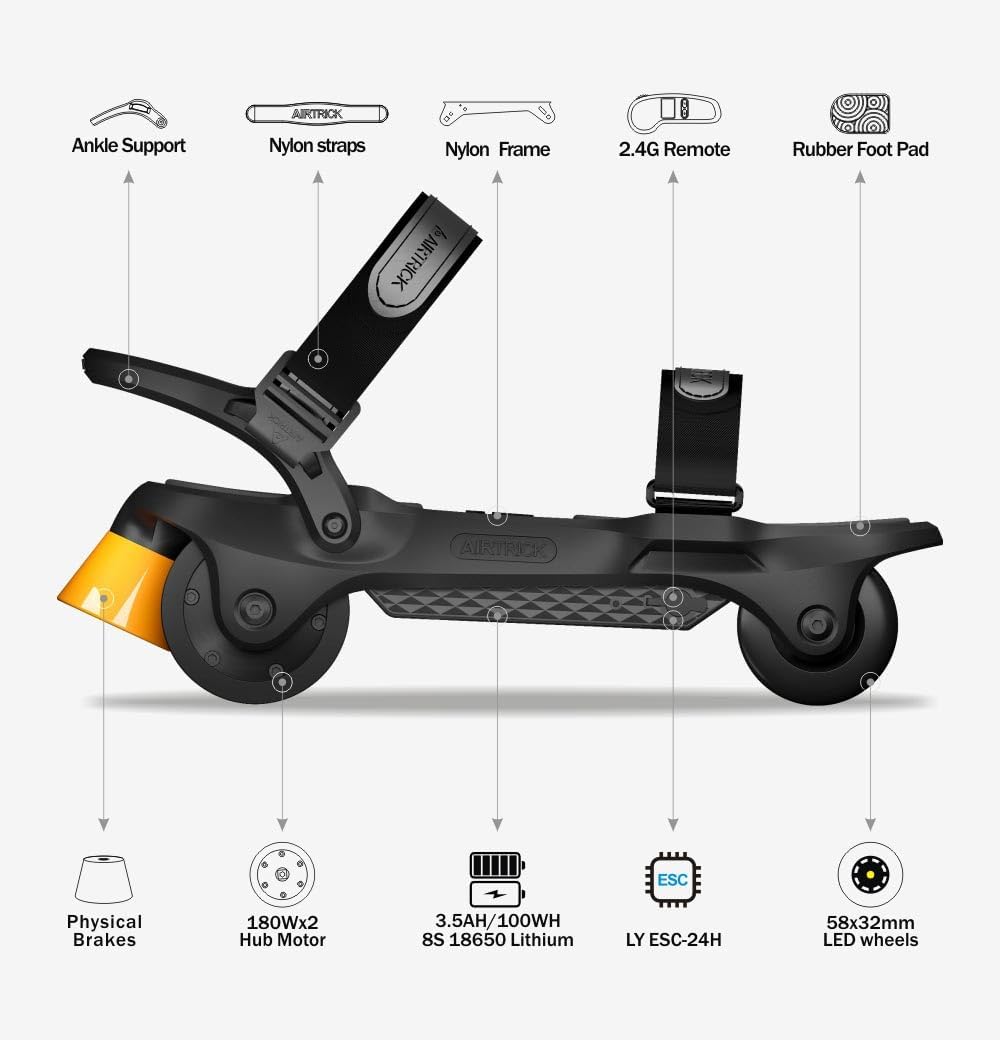 The AIRTRICK A1 Electric Skateboard is a convenient and portable mode of transportation that offers a fun and efficient way to move around town. With its lightweight and compact design, it's easy to carry and store when not in use. This electric skateboard has a top speed of 12.4 mph and can go up to 6 miles on a single charge, making it perfect for short commutes, running errands, or just cruising around the neighborhood.