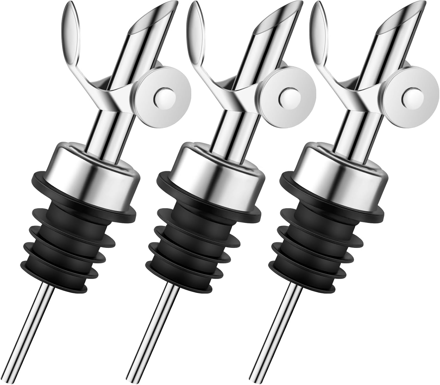 LESYDGS1 3 Pack Stainless Steel Liquor Pour Spouts with Dust Caps, Bottle Pourers for Alcohol, Olive Oil & Syrup Dispenser Spouts for Kitchen & Bar, Drip-Free, Silver