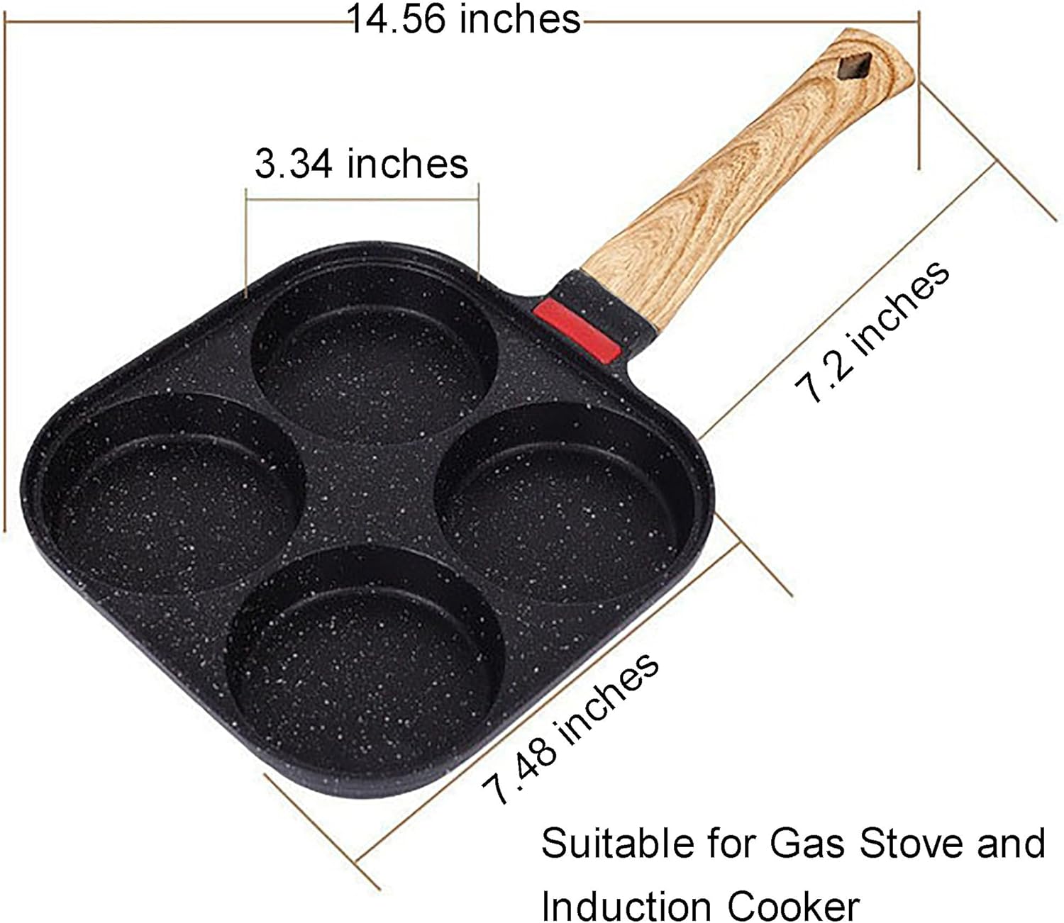 Egg Pan 4 Cup Nonstick Frying Omelette Pan with Lid for Breakfast Skillet for Eggs Pancake with 1 Spatula 1 Brush Black