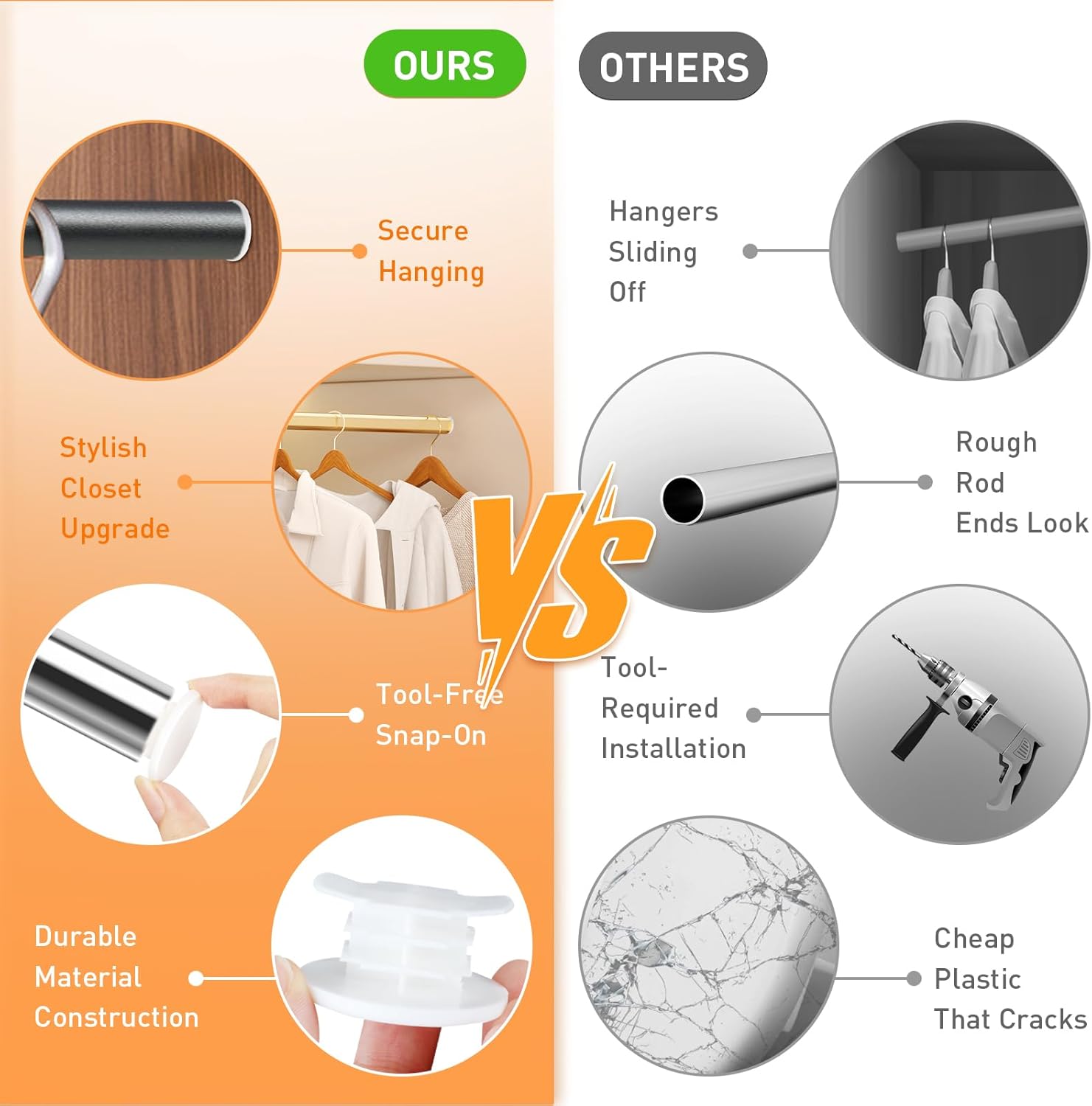 10 Pcs Plastic Closet Rod End Caps, Fit for 1-1/8” Interior Diameter Closet Rod, Adjustable Closet Pole End Caps