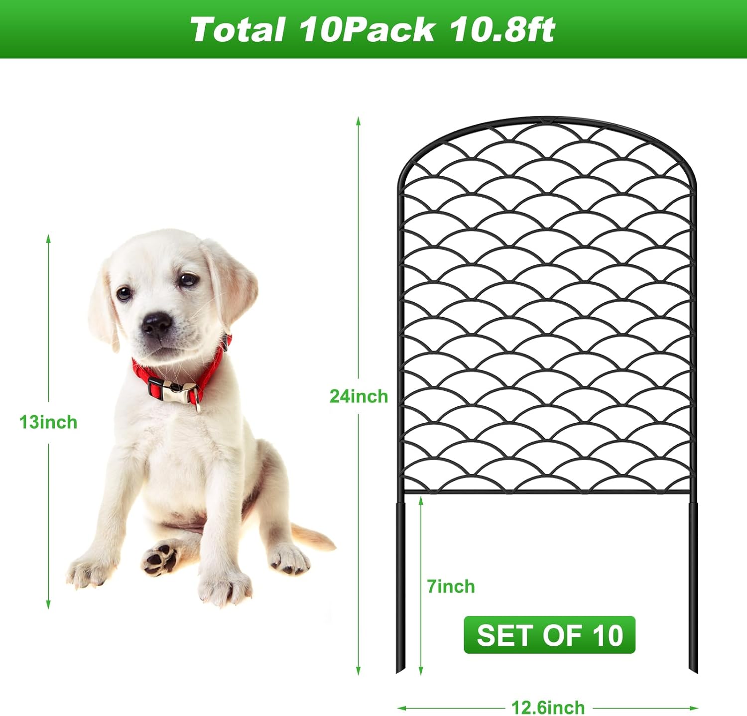 Decorative Garden Fence 10 Pack, 24in(H) x 10.8ft(L) Animal Barrier Fence, Rustproof Metal Fencing for Yard, Dog Rabbits Wire Section Garden Edging Border for Yard Patio Garden, Arched