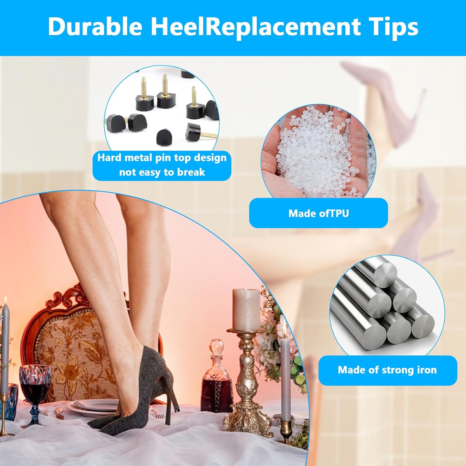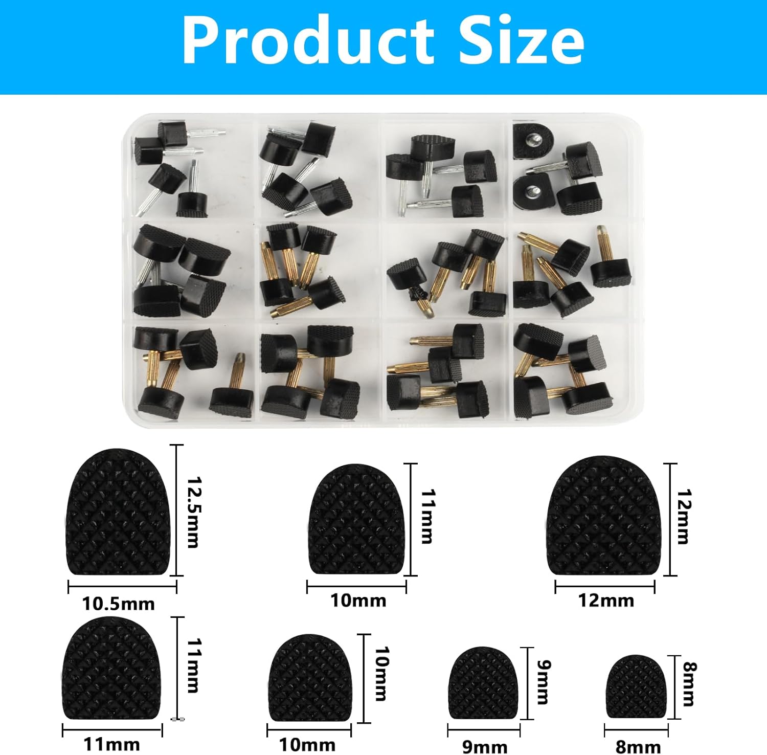 24 Pairs High Heel Tips Shoes Replacement Tap Caps,12 Size,(8-12.5mm),U-Shape, Black