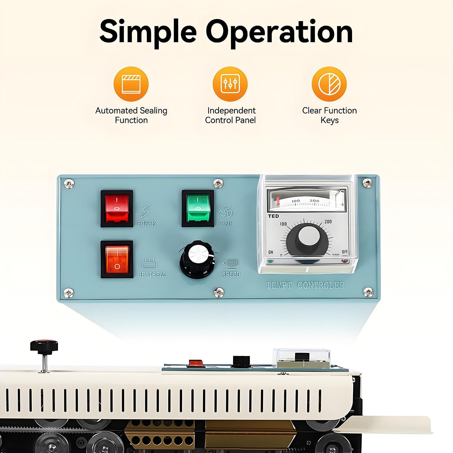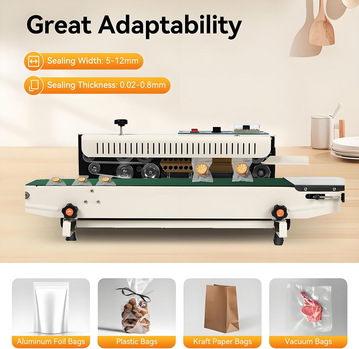 FR-900 Sealing Machine Automatic Horizontal Continuous Plastic Bag Band Sealer Machine 750W Electric Packing Tool for Packaging and Sealing 5-12mm Sealing Width 110V