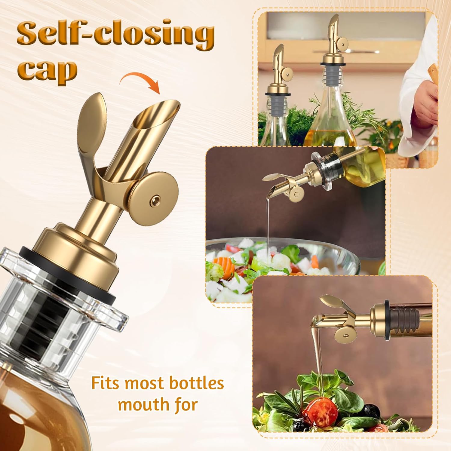 2 PCS Weighted Stainless Steel Bottle Pourers, Olive Oil Dispenser Spout, Self Closing Liquor Pour Spout, Weighted Pourer for Liquor Bottles, Oil Bottles, Vinegar, Syrup and Alcohol, Gold