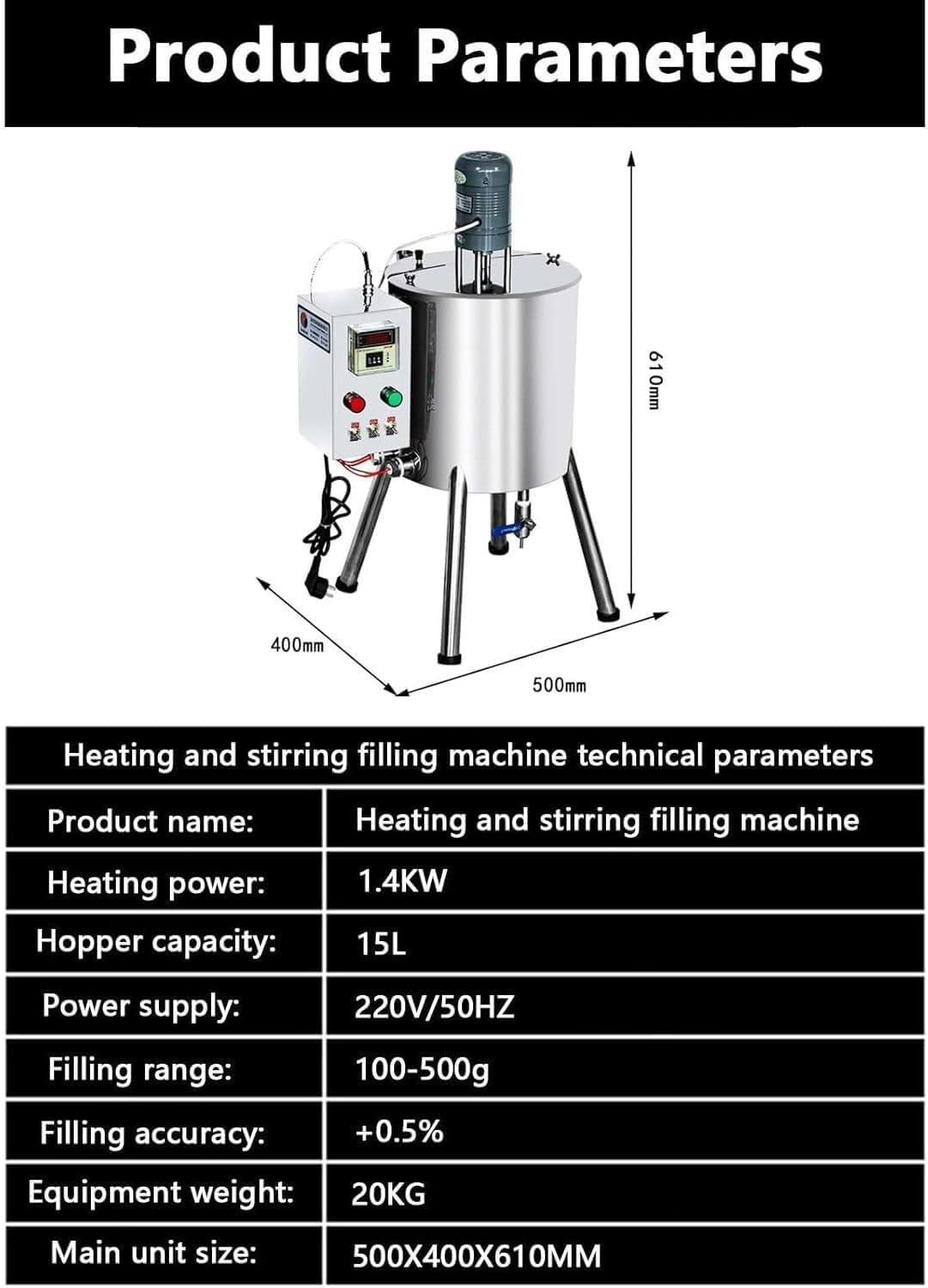 Electric Heating Mixing Filling Machine, 15L Paste Liquid, 1400W Stainless Steel Lipstick Candle Heat Filler, for Liquids, Pastes
