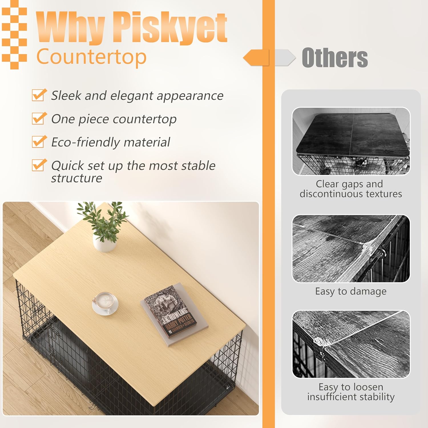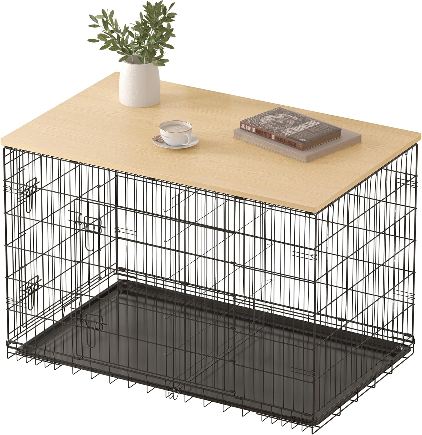 Piskyet Dog Crate Topper Wood Countertop for 48 42 36 30 24 inch Dog Cage, Dog Crate Cover,Dog Kennel Topper(Crate Not Include) (Natural Wood, for 24 Inch Crate)