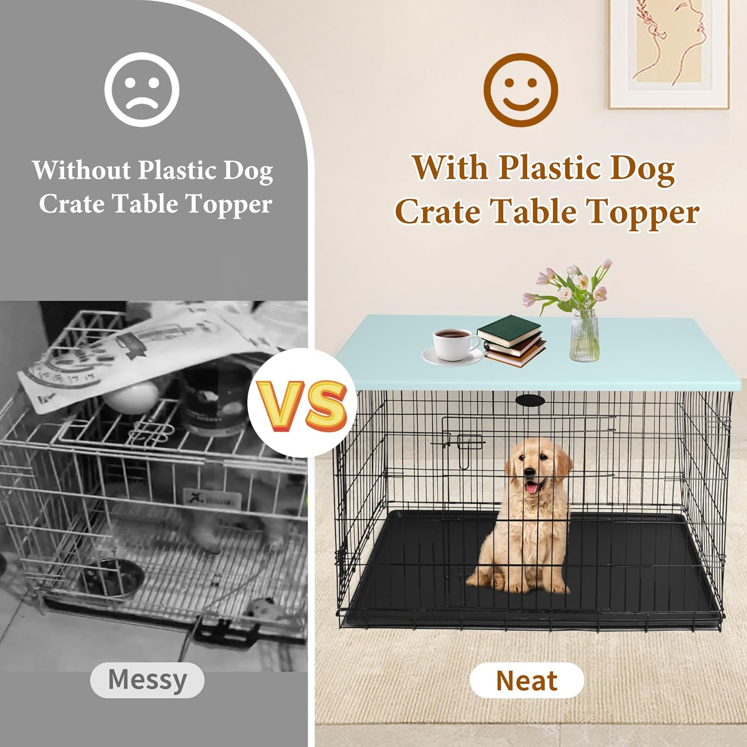 Dog Crate Topper for 36" Wire Cage Plastic Kennel Cage Table Topper with Screw Fixation, Non-Slip Design, Space-Saving Pet Cage Top,Blue (No Crate)