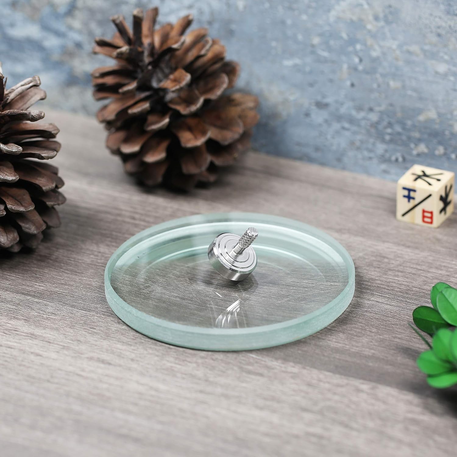 Joytech 3.93'' (100mm) Diameter Spinning Top Base K9 Crystal Glass Concave Mirror, Great High End Transparent Surface Double Concave Top Accessory DZ04
